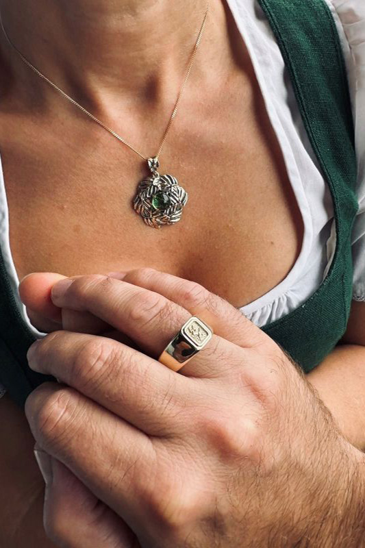 die Spitze im wahrsten Sinne des Wortes ist eine Gravur der Dachsteinsilhouette im Inneren der Ringschiene. Noch nie war ein Ring steirischer. Gefertigt wird dieses steirische Statement Piece exklusiv im Atelier von Juwelier Johann in Gratkorn bei Graz.
